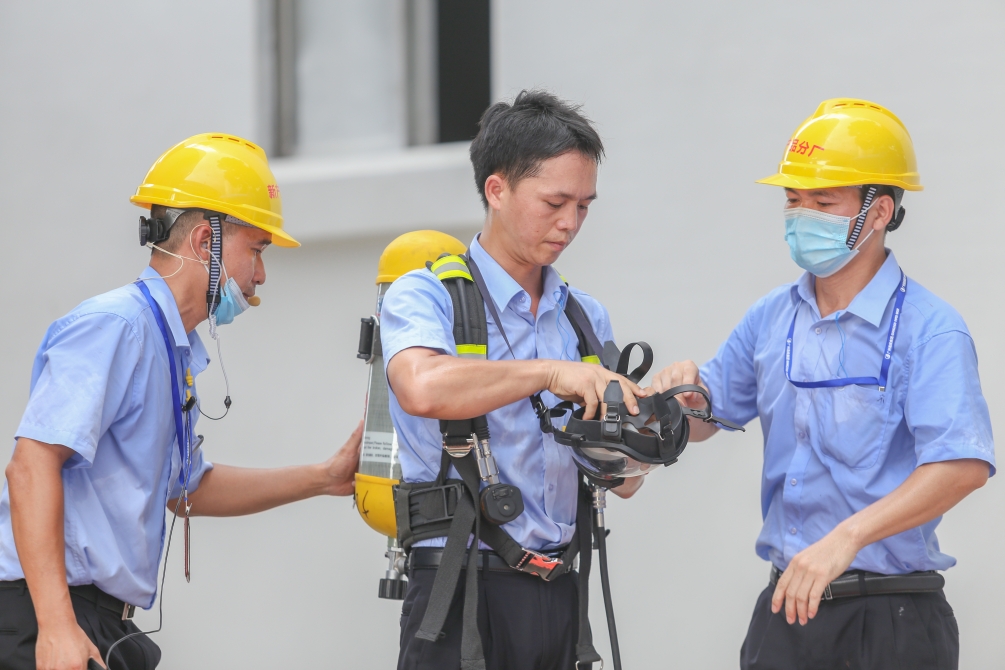 在公司领导的高度重视下,通过新产品分厂、办公室、人力资源部、采购部、生产部、物流管理部、园区发展部等部门的积极配合,广州市有限空间作业安全操作展示和应急救援演练于8月26日在公司成功举办。市应急管理局党委书记、局长黄彪、南沙区常务副区长谢明、越秀集团副总经理谭思马和公司党委书记、董事长周耘出席了本次活动,各区应急管理局和珠江街主要负责人、市有限空间作业重点企业代表、越秀集团安监部和各板块安全责任人及公司AB类部门共160余人现场观摩演练。