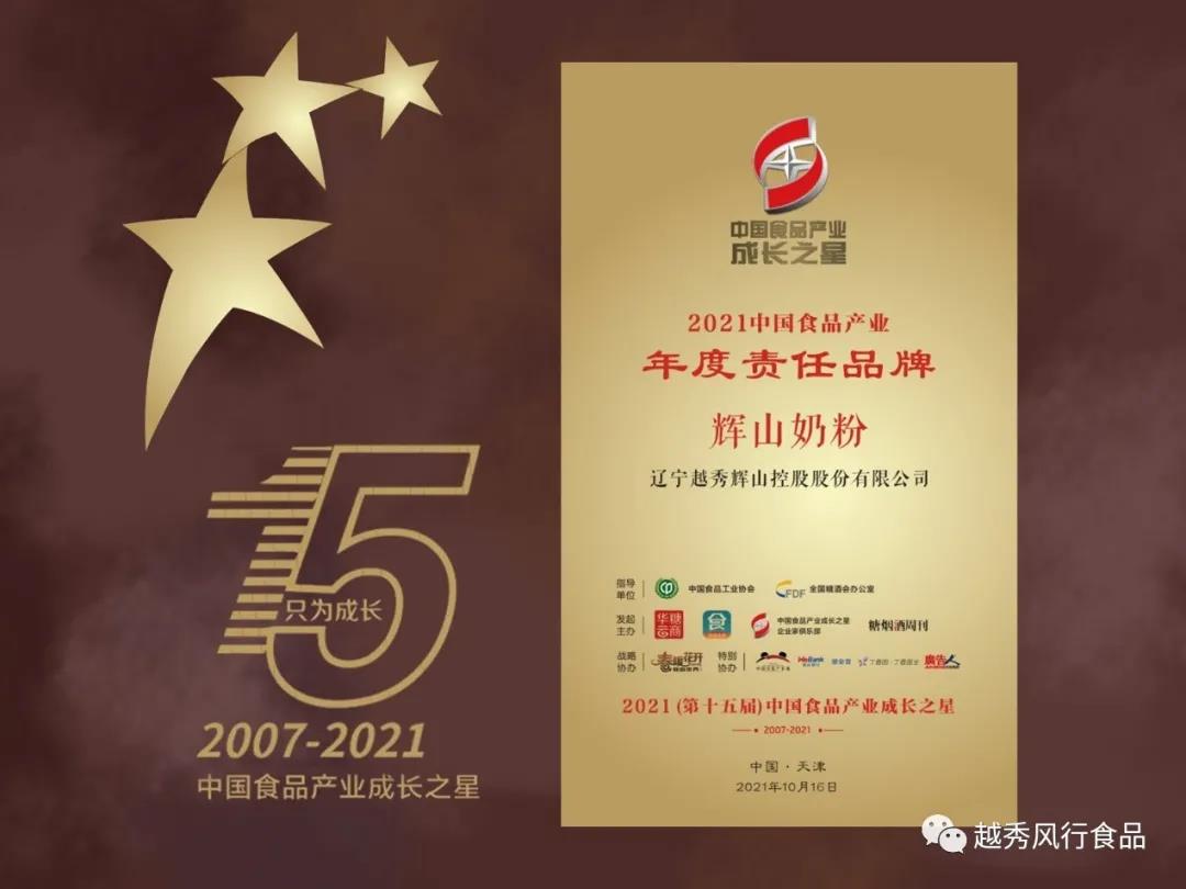 辉山奶粉获“2021中国食品产业成长之星·年度责任品牌”大奖
