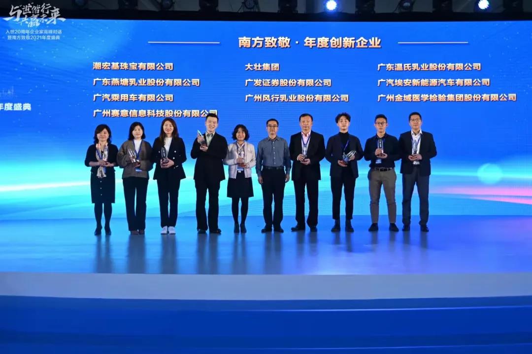 共赢未来——入世20周年企业家高峰对话暨南方致敬2021年度盛典”在广州塔举行。风行乳业荣获“南方致敬·年度创新企业”奖项。