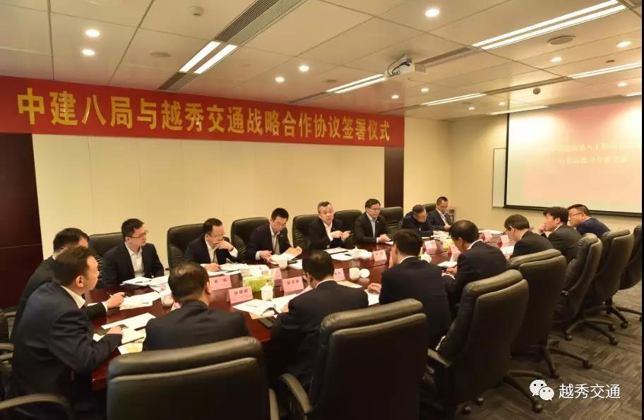 2020年1月3日,中建八局助理总经理、华南分局党委书记许啟新,中建八局基础设施事业部总经理贾海庆等领导一行来到越秀交通考察交流。