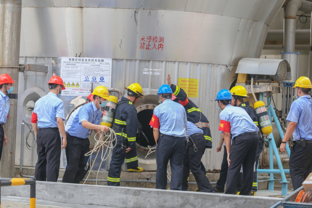 本次演练分为有限空间作业安全操作展示和有限空间事故应急救援演练两部分。