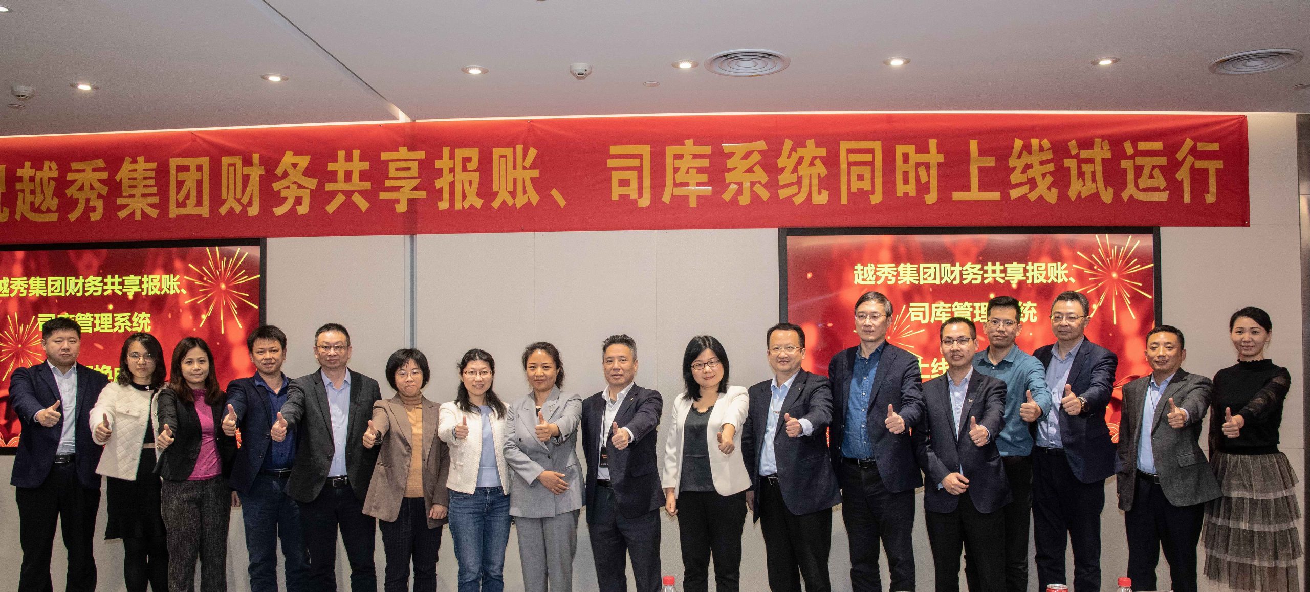 随着与会领导和现场嘉宾联手切开纪念蛋糕,带领全场共同喊出“越秀集团财务共享报账、司库管理系统上线切换成功”,会议被推向高潮,财务共享和司库管理系统正式上线启用。