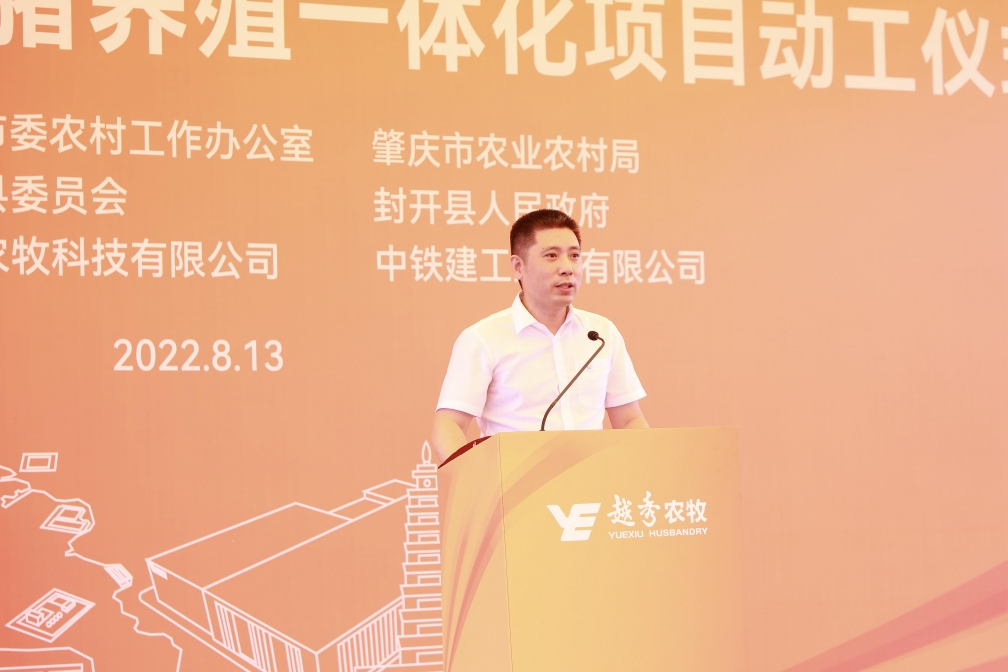 越秀集团副总经理韦黎明在致辞中指出,肇庆作为越秀集团首次集中布局生猪养殖、食品加工业务的重点区域,对集团打造生猪养殖全产业链,提高生猪产业附加值具有重要意义。集团将全力做好项目设计、建设和运营等各项工作,力争早竣工、早投产、早见效,把项目打造成行业标杆典范,成为肇庆现代农业发展的一张靓丽“名片”。越秀集团未来还将进一步拓展合作领域,把肇庆作为链接粤港澳大湾区和大西南地区的重要枢纽和投资重点城市,不断巩固拓展城市运营、金融服务、农业食品等领域的合作,实现资源共享、优势互补、合作共赢,为肇庆经济社会发展贡献越秀力量。